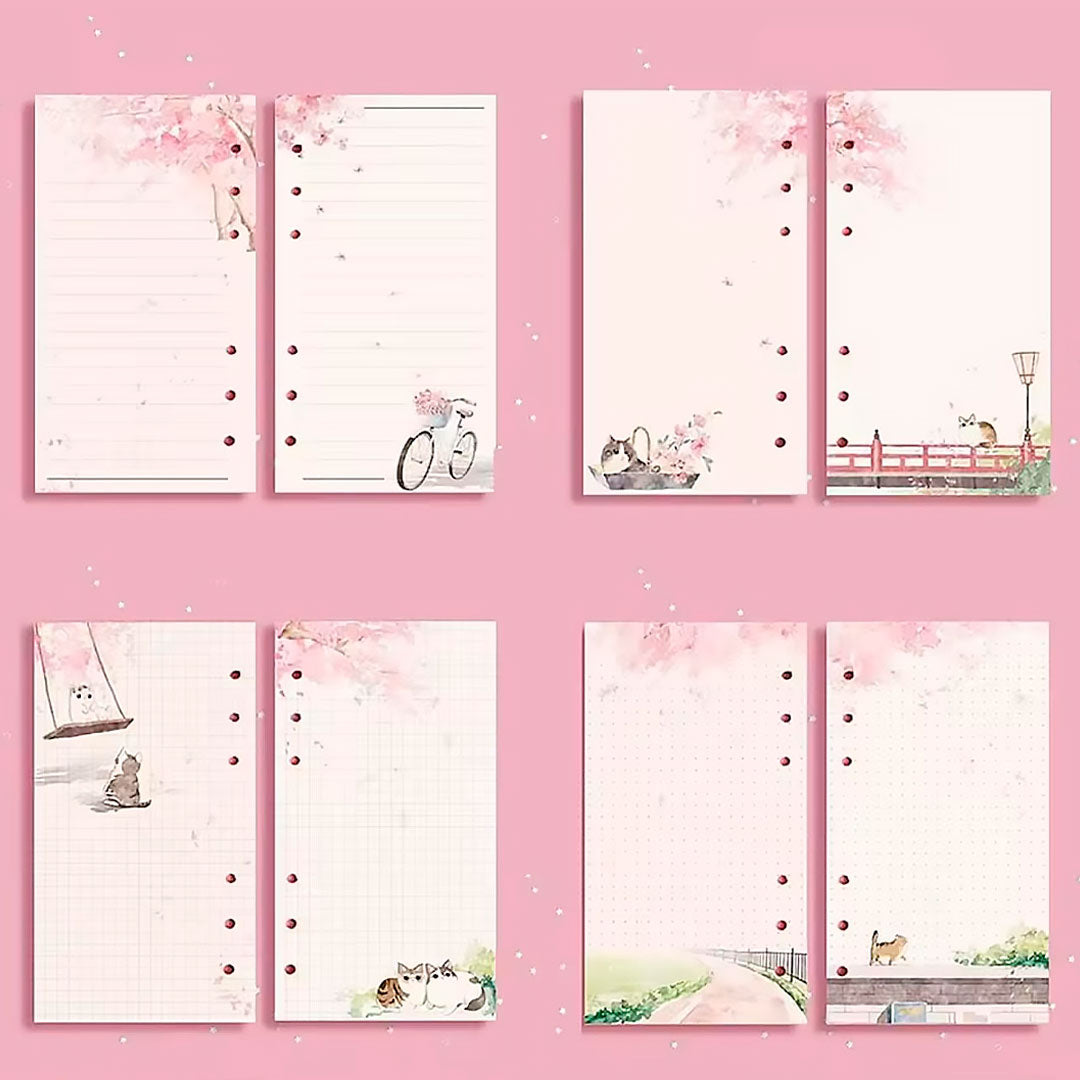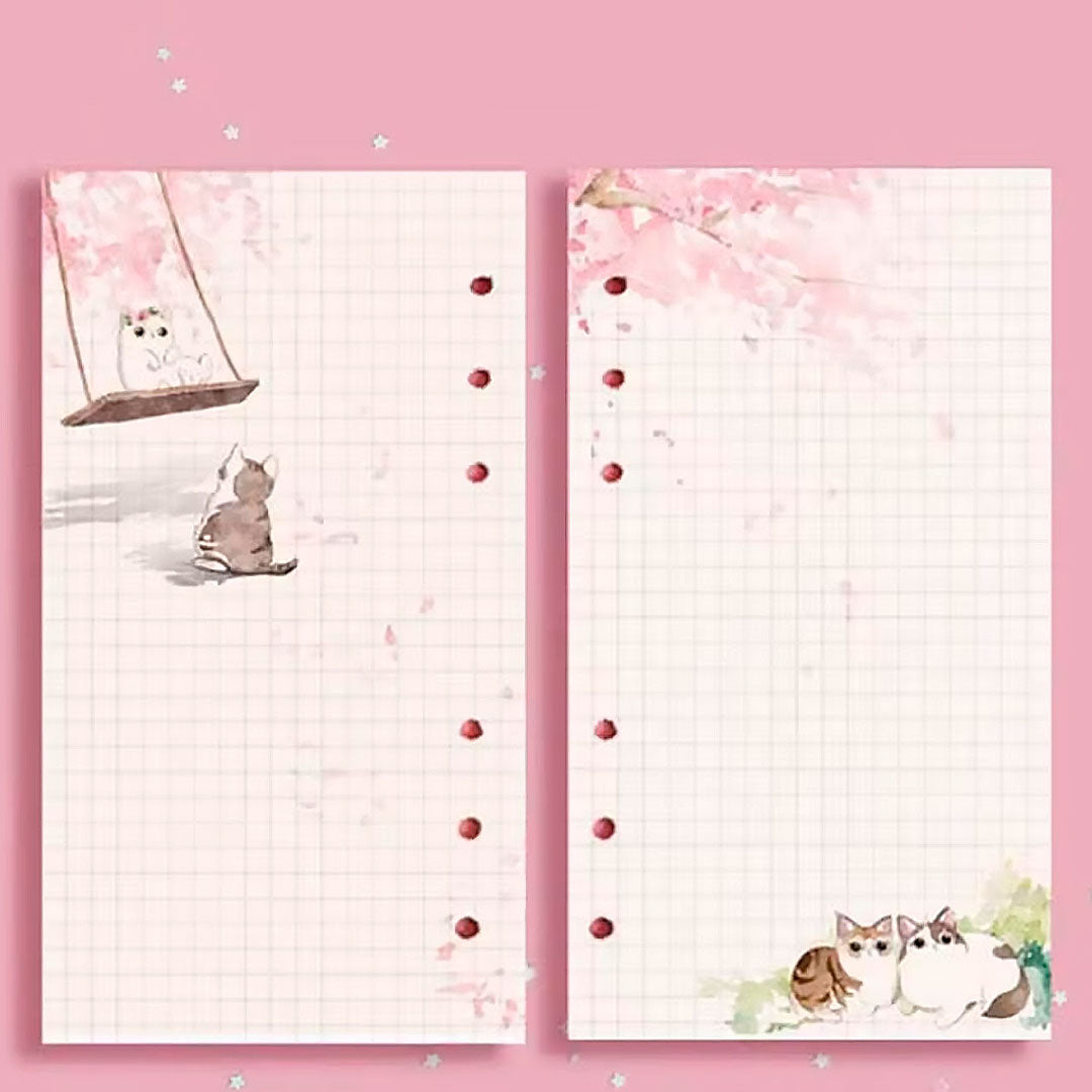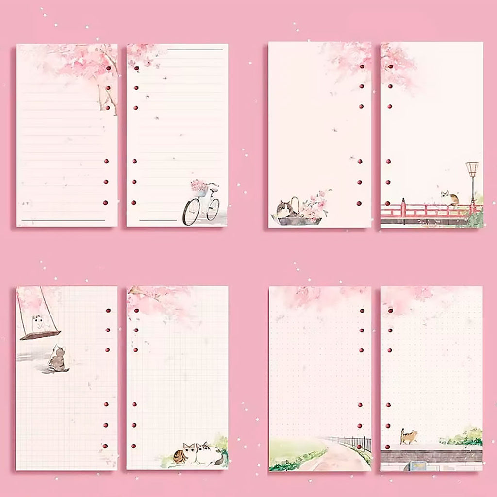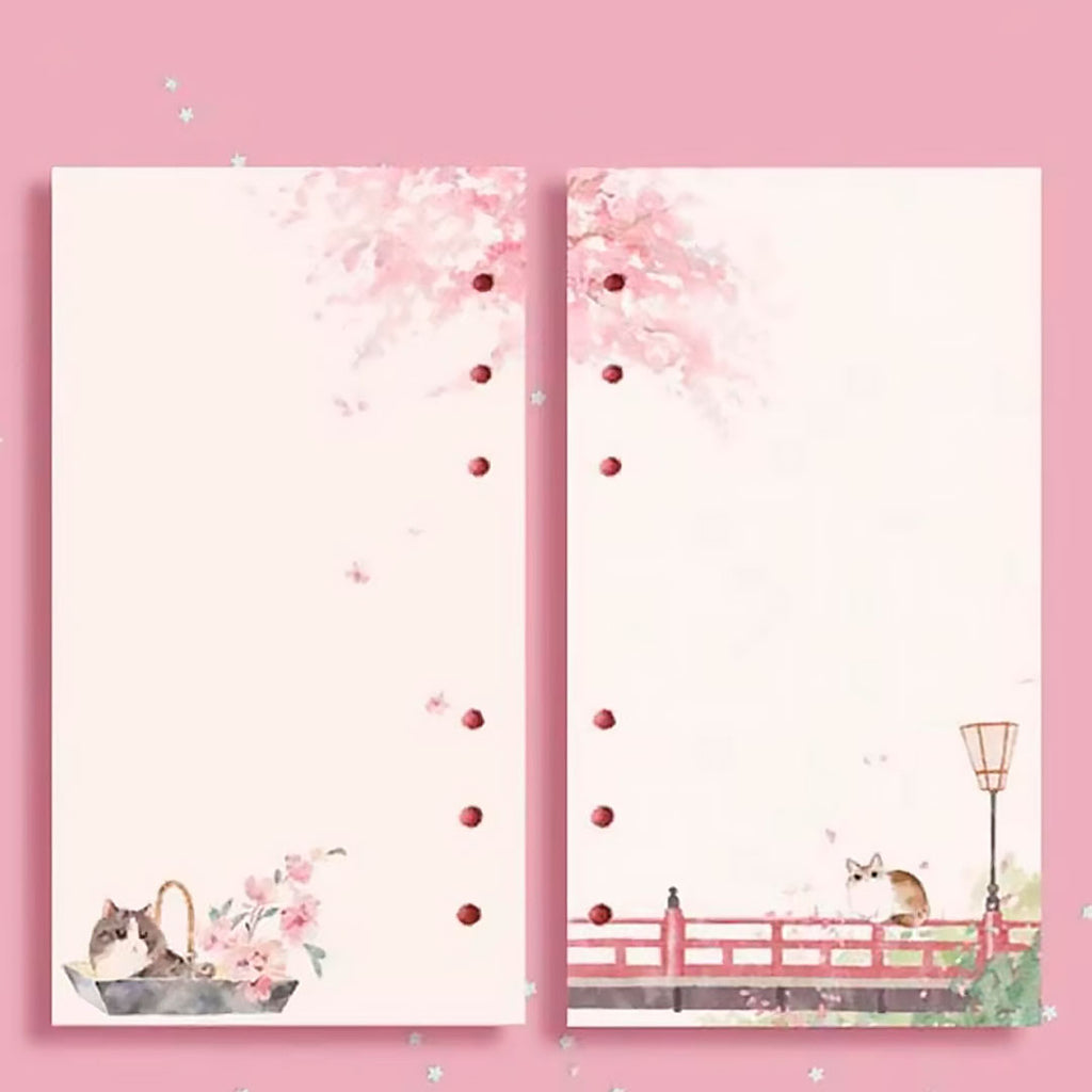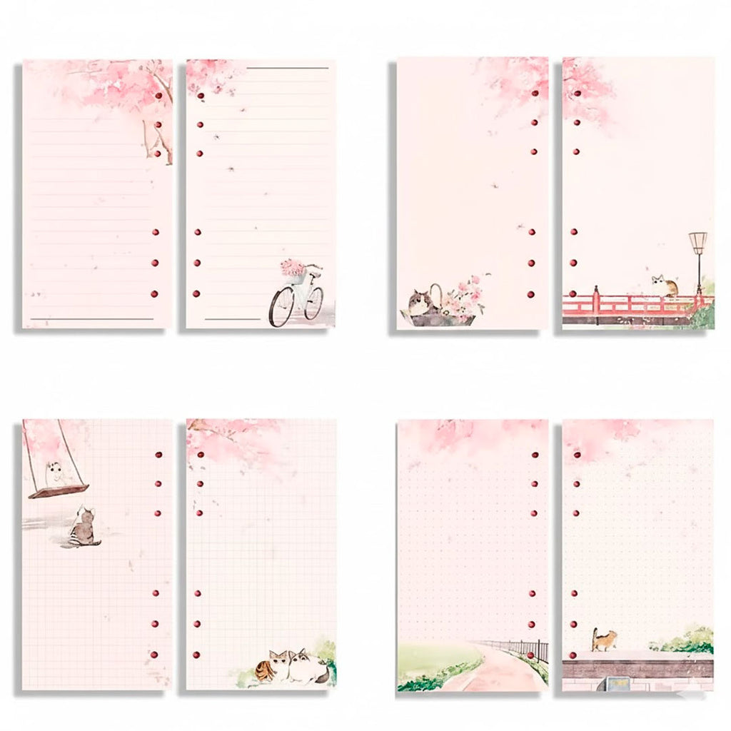 Dale vida y color a tus notas y apuntes con estas preciosas hojas de repuesto para tu carpeta. El paquete incluye 80 hojas con 8 diferentes diseños con preciosas ilustraciones con estilo de acuarela de tiernos gatitos y árboles de cerezo.