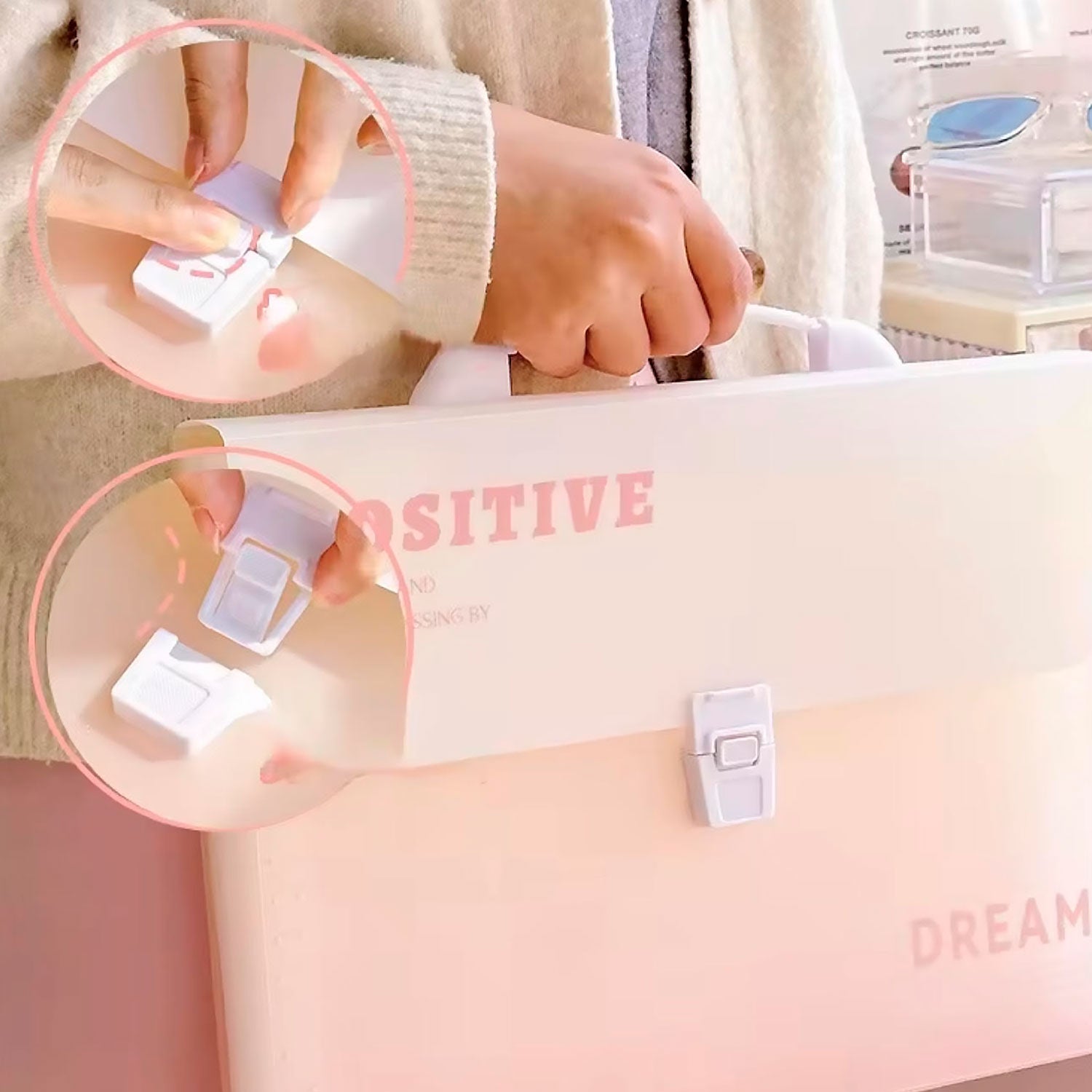 Por fuera, el broche te ayudará a mantener tu carpeta cerrada para que no se salga nada. Y su práctica asa te permitirá transportarla cómodamente para que la tengas a la mano siempre que la necesites.