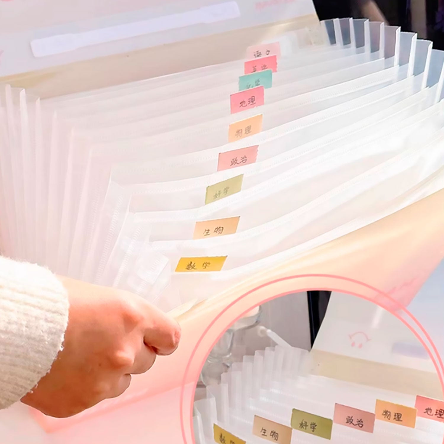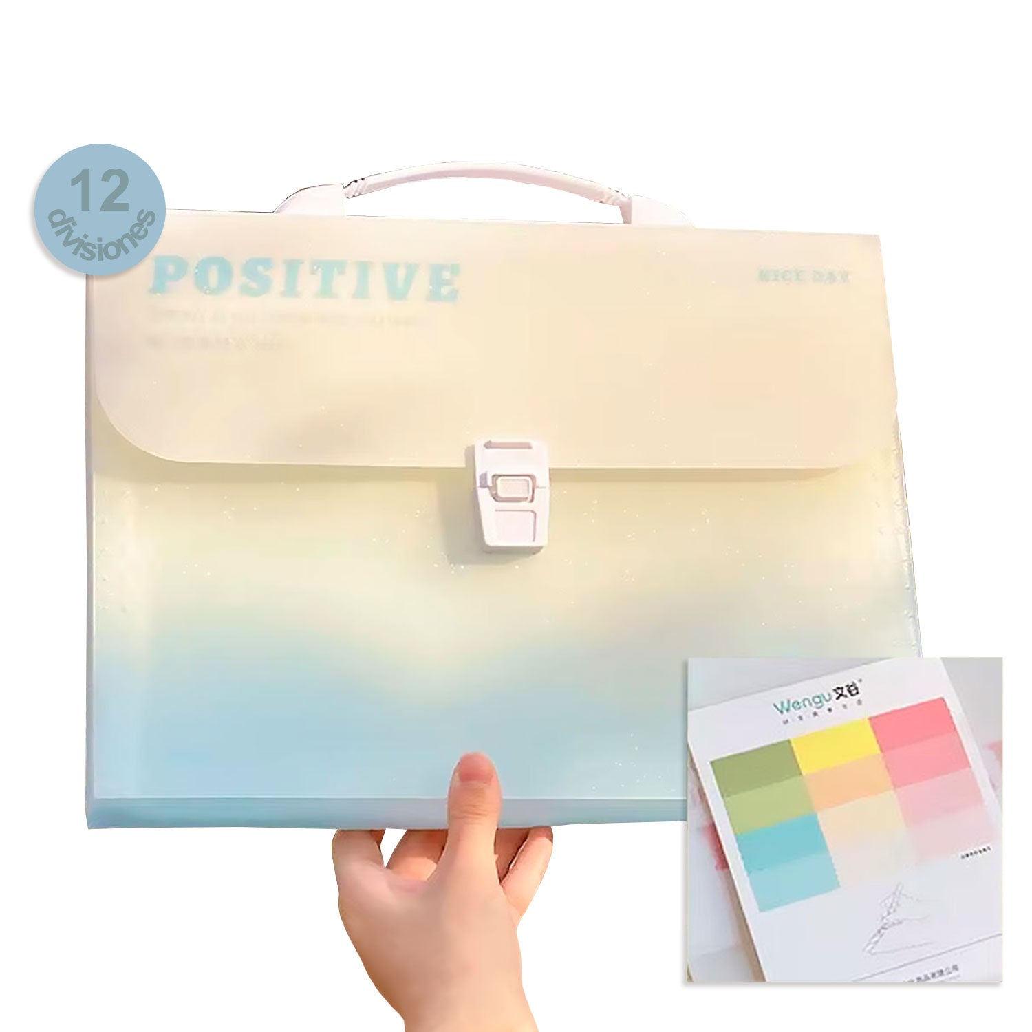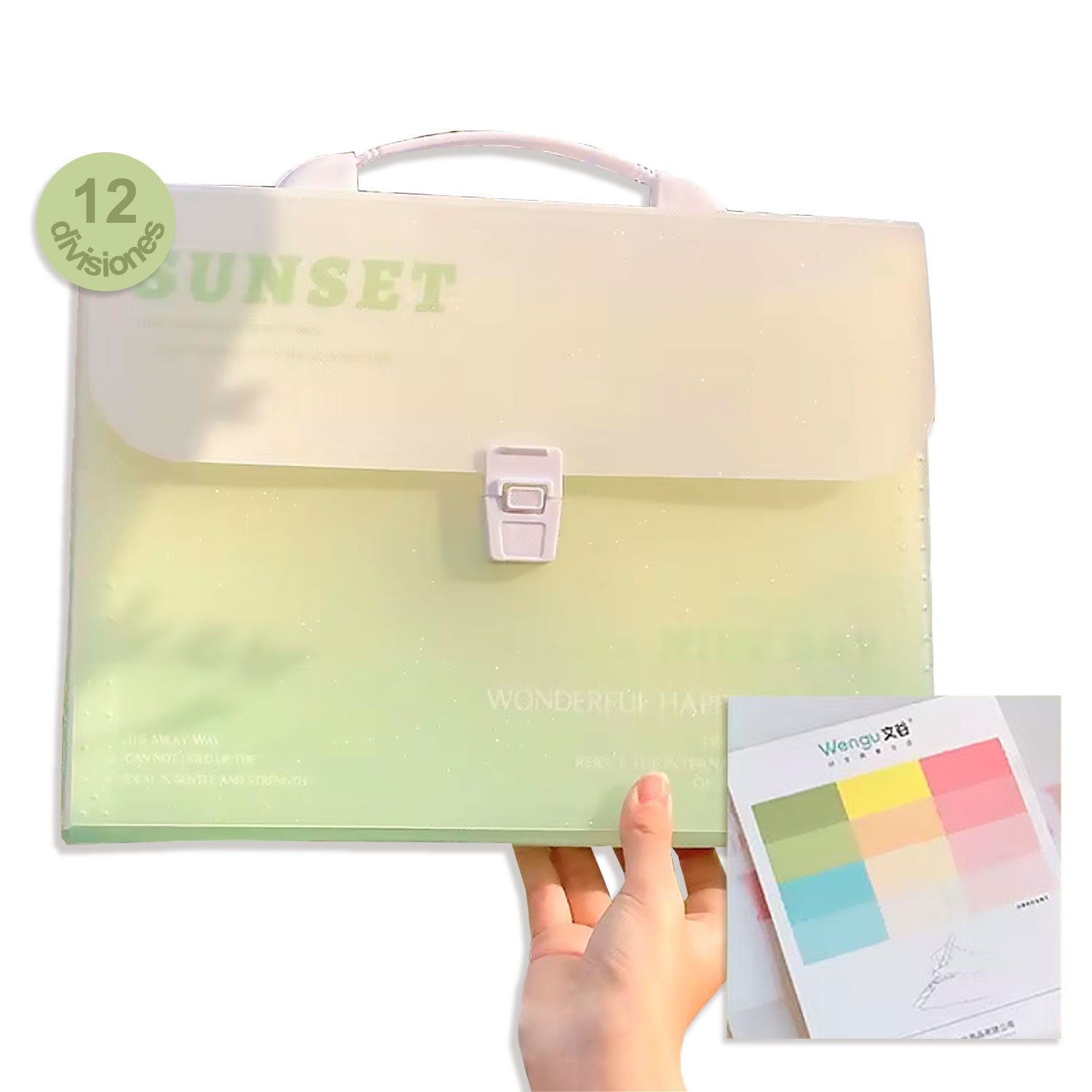 Con esta práctica carpeta expandible con divisiones podrás mantener organizados tus documentos. En su interior tiene 12 pestañas que te permitirán clasificar y localizar fácilmente tus documentos personales, de la escuela o el trabajo, evitando que se pierdan o se mezclen. Con las etiquetas de colores podrás anotar y pegar títulos para cada pestaña.