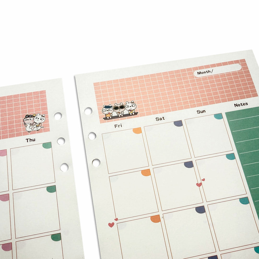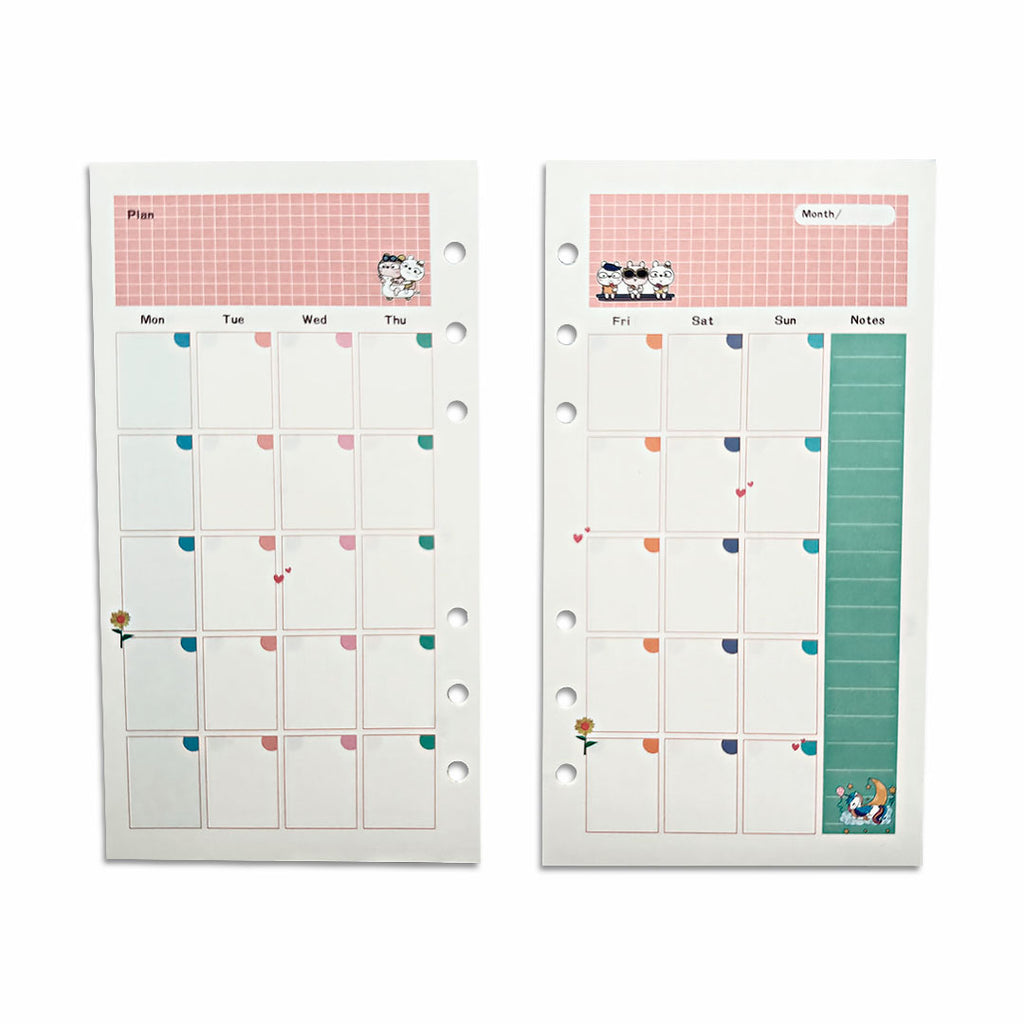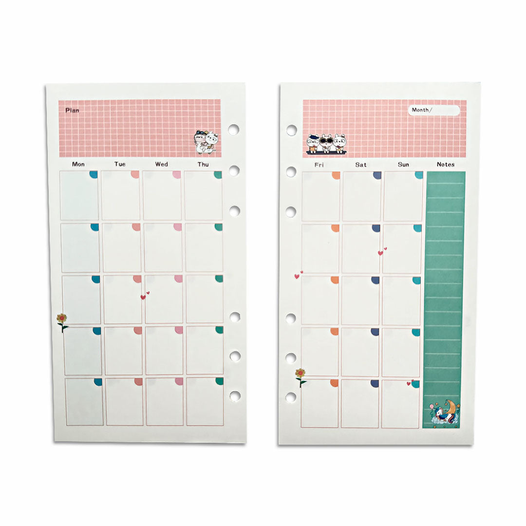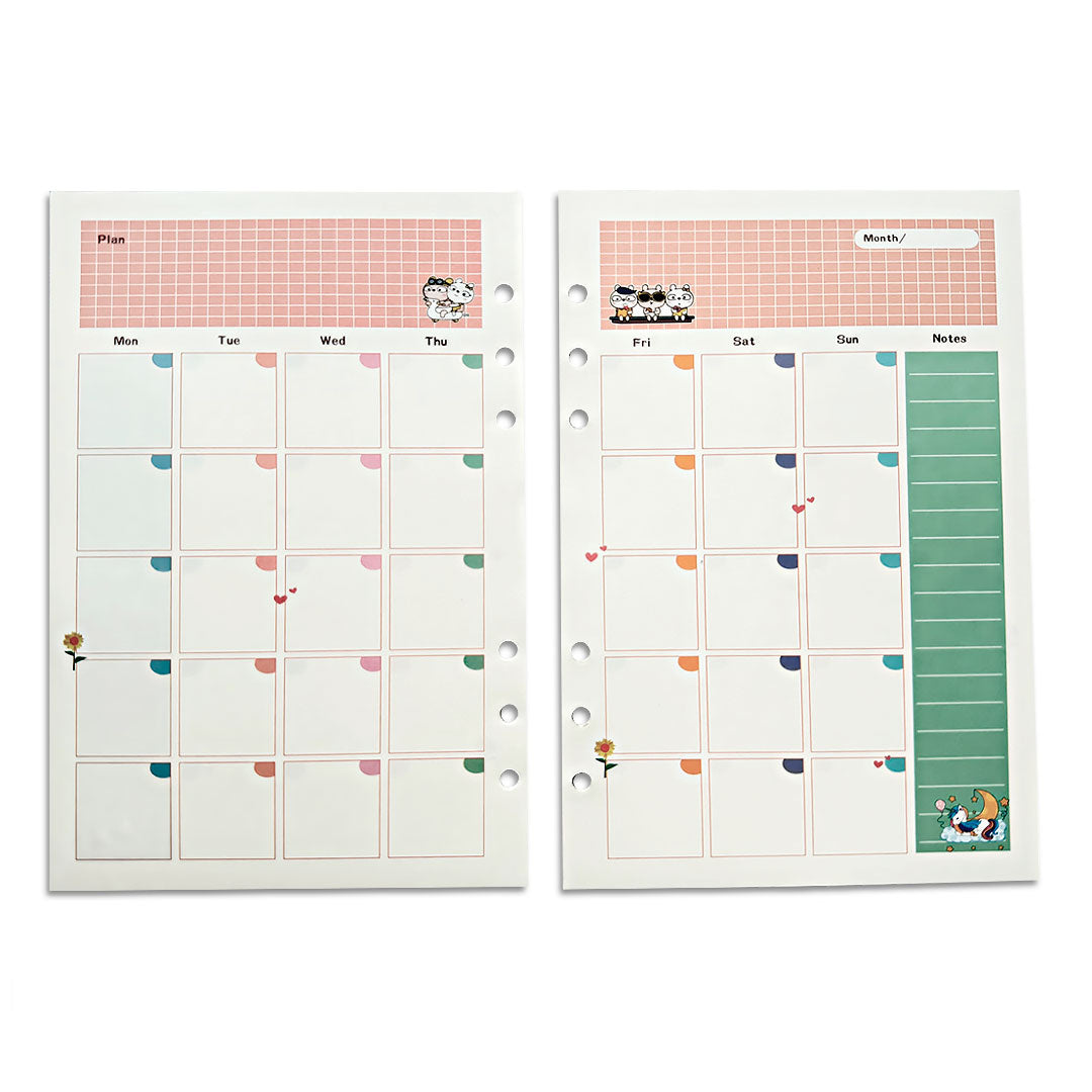 Hojas para Carpeta con Aros A5 y A6 Planner Mensual