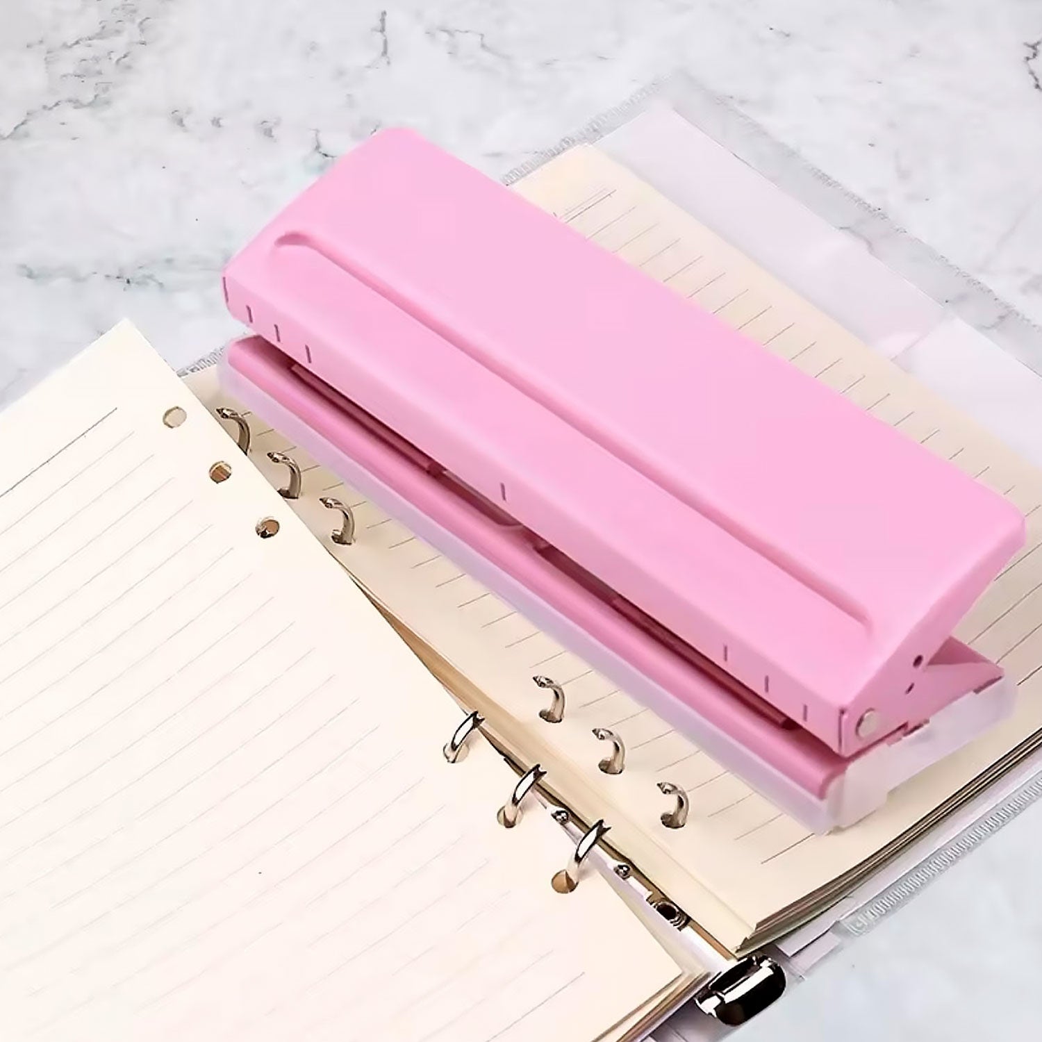 Tienes apuntes en diferentes hojas que no están perforadas, pero te encantaría agregarlas a tu carpeta de 6 aros. ¡Tenemos la solución perfecta para ti! Con la Perforadora de 6 agujeros para Hojas Tamaño A5 y A6, perfora cualquier hoja que quieras agregar y organizar en tu carpeta.