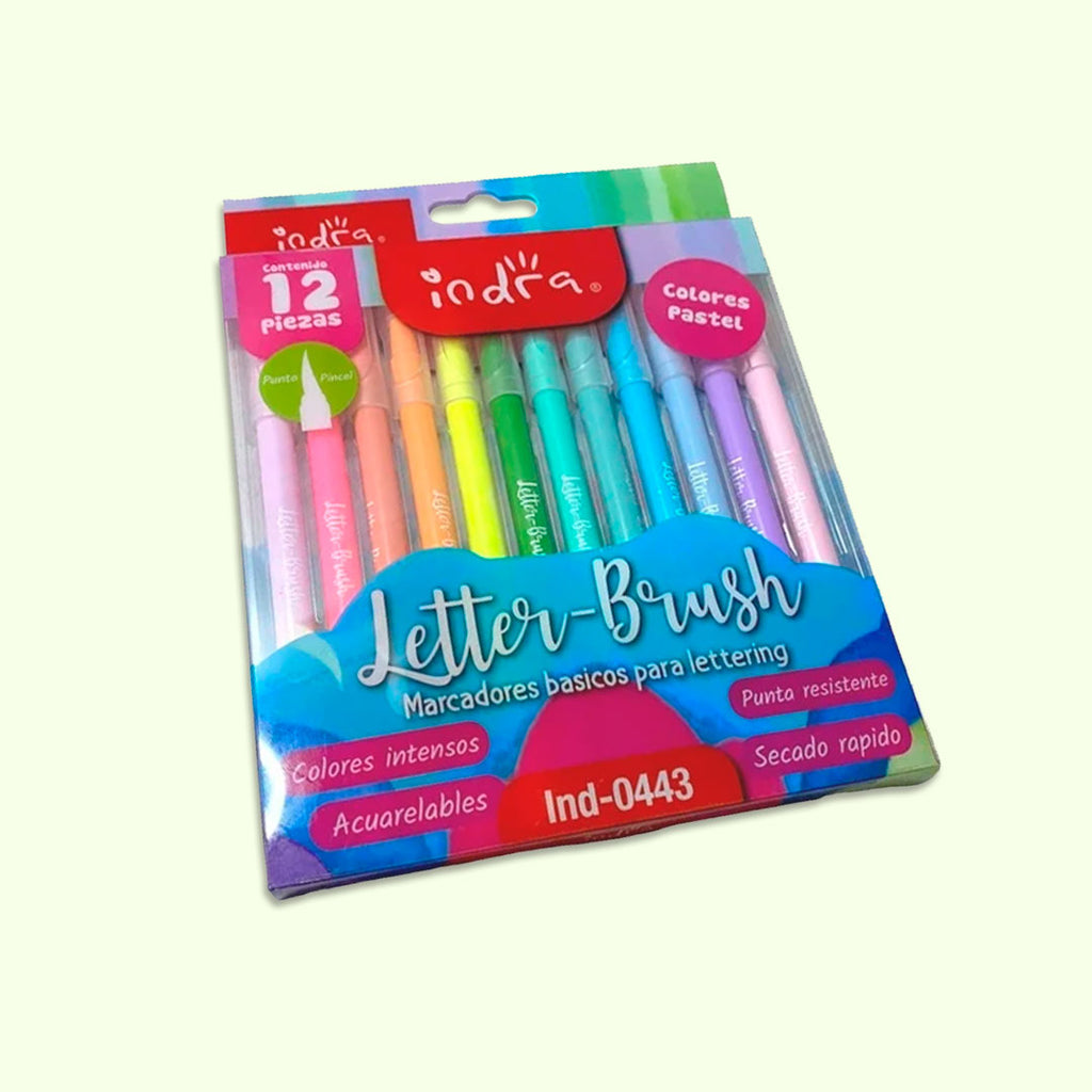 Llena de color las páginas de tu bullet journal o libreta de apuntes bonitos con este set de 12 plumones Indra Letter Brush. Tienen una punta pincel que te permite hacer trazos gruesos o delgados, ideales para lettering. ¡Además son acuarelables y de secado rápido!