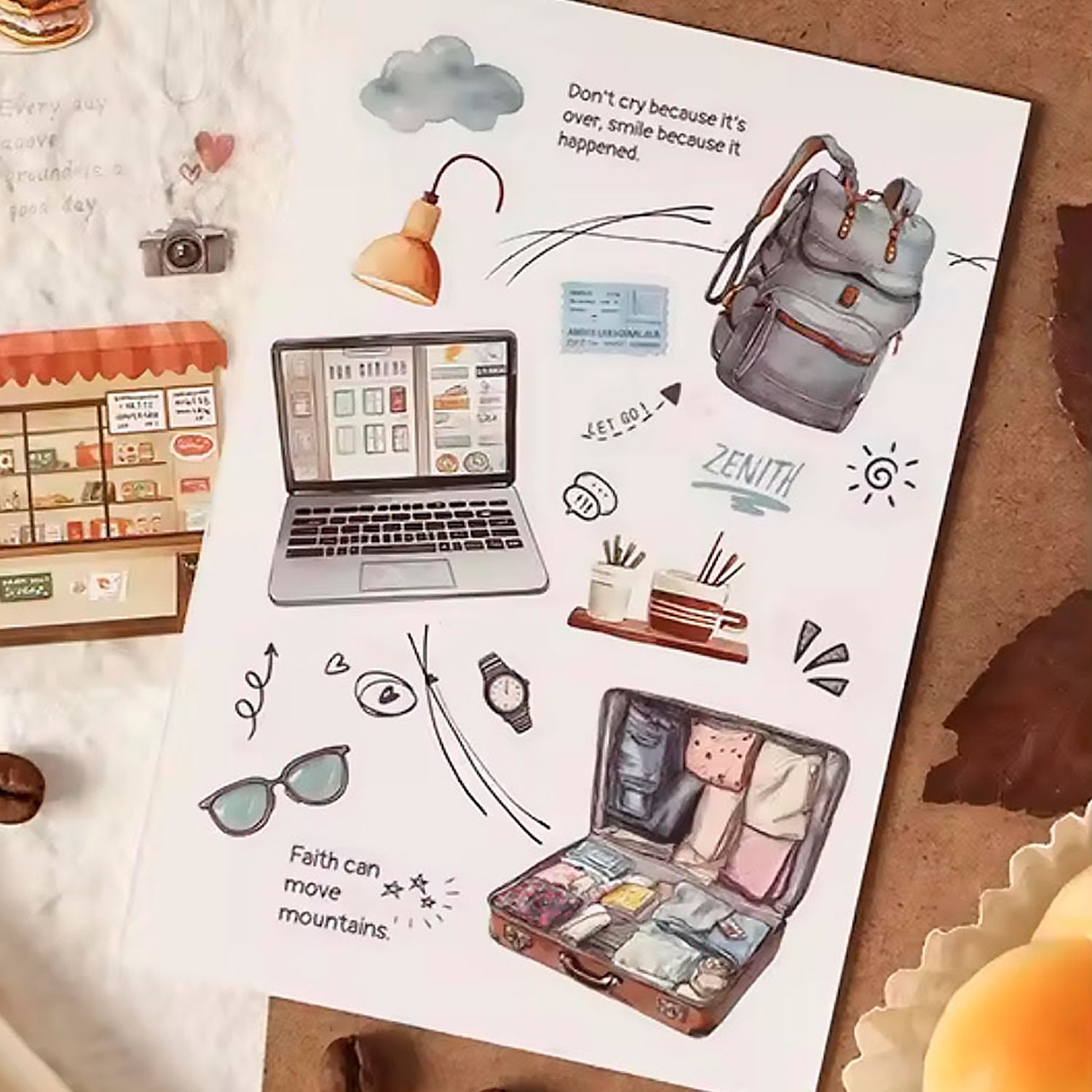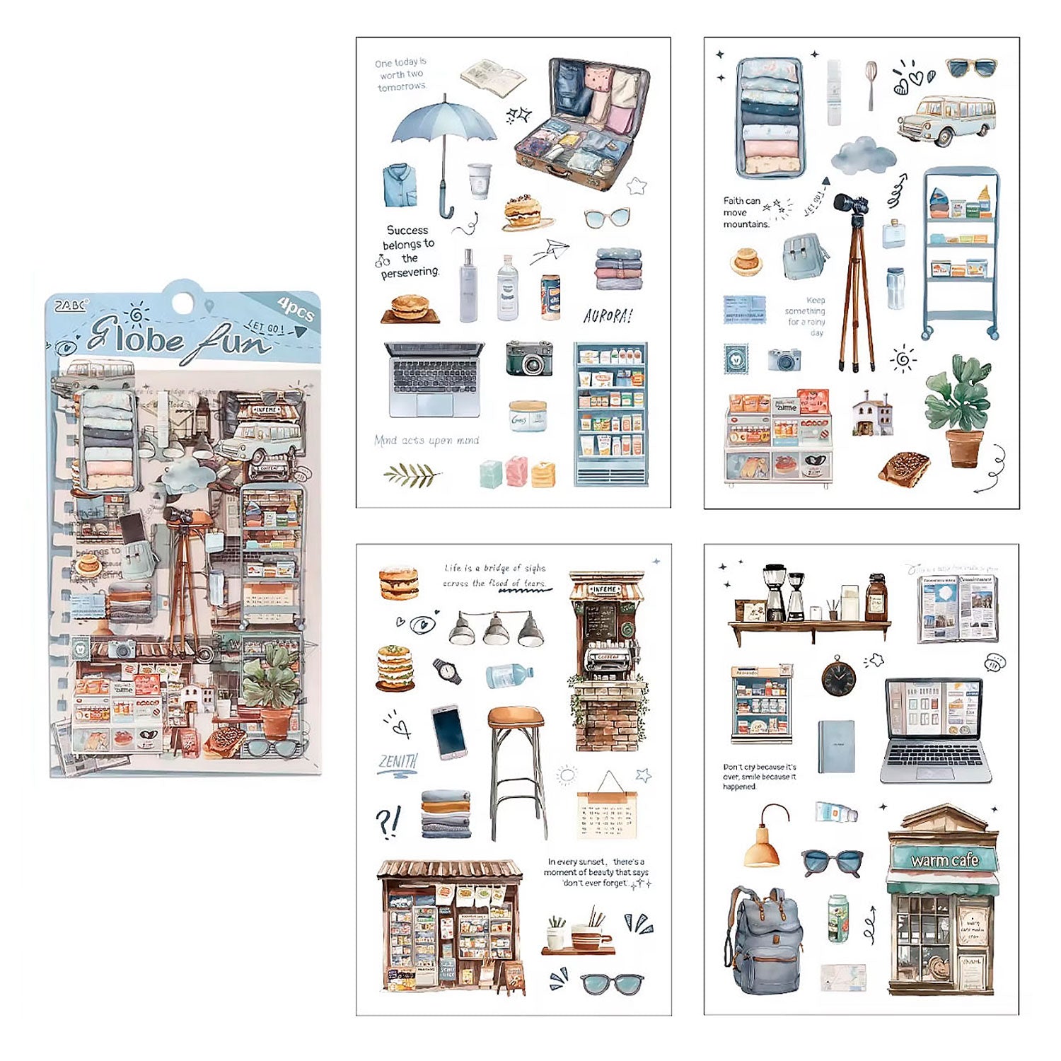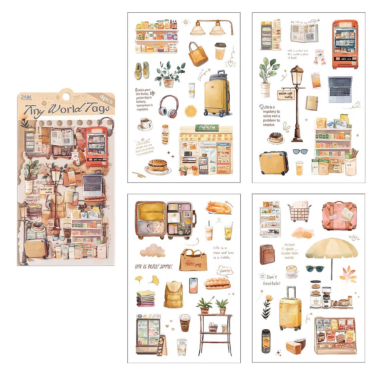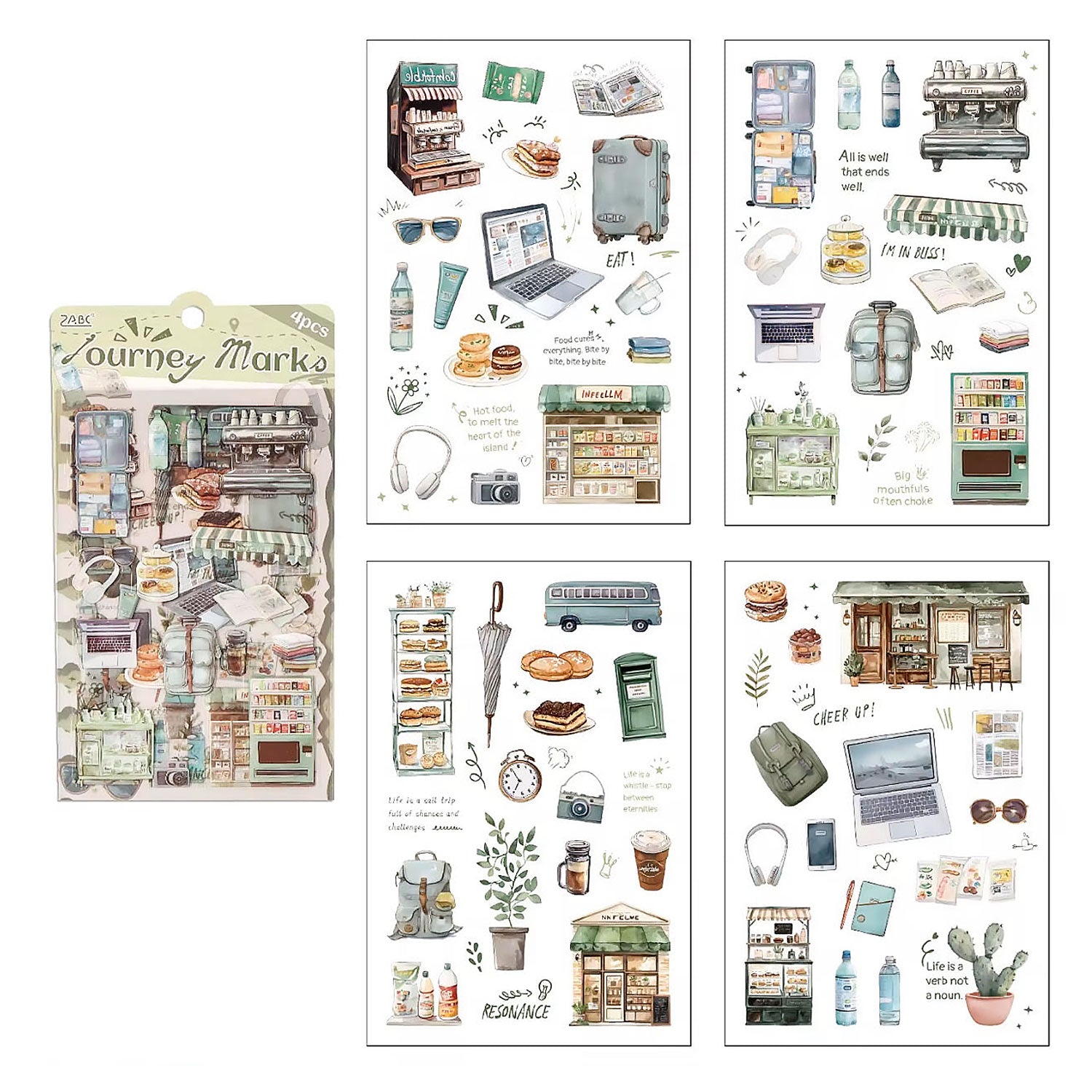 El paquete de Stickers Pequeños Placeres contiene cuatro planillas de stickers con lindas ilustraciones inspiradas en objetos y momentos de la vida cotidiana, lo que lo hace ideal para llenar de vida tu journal o scrapbook.