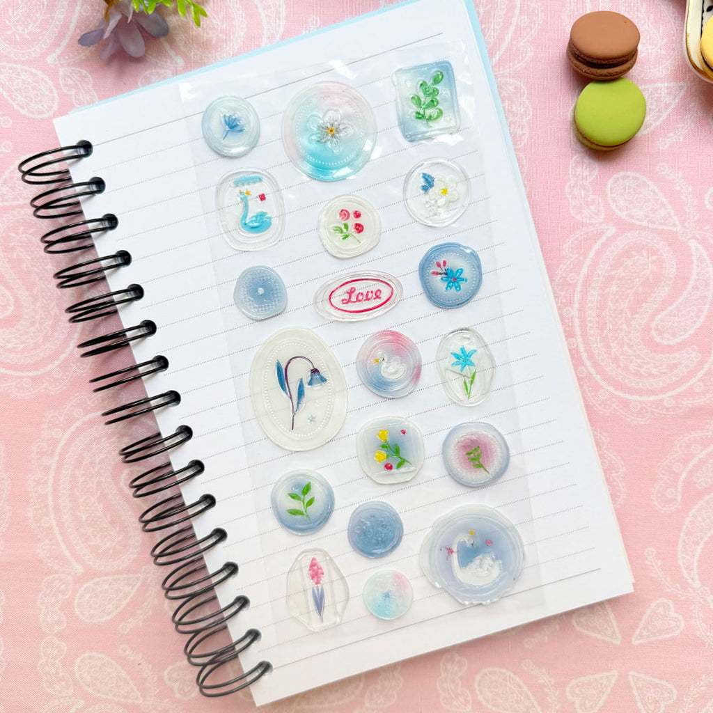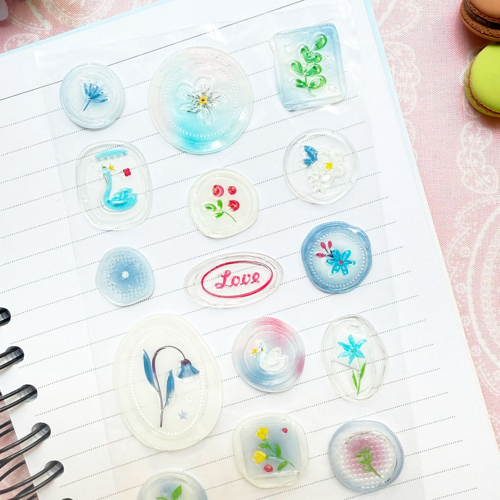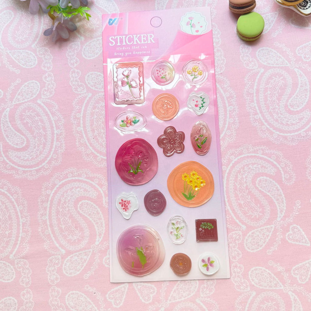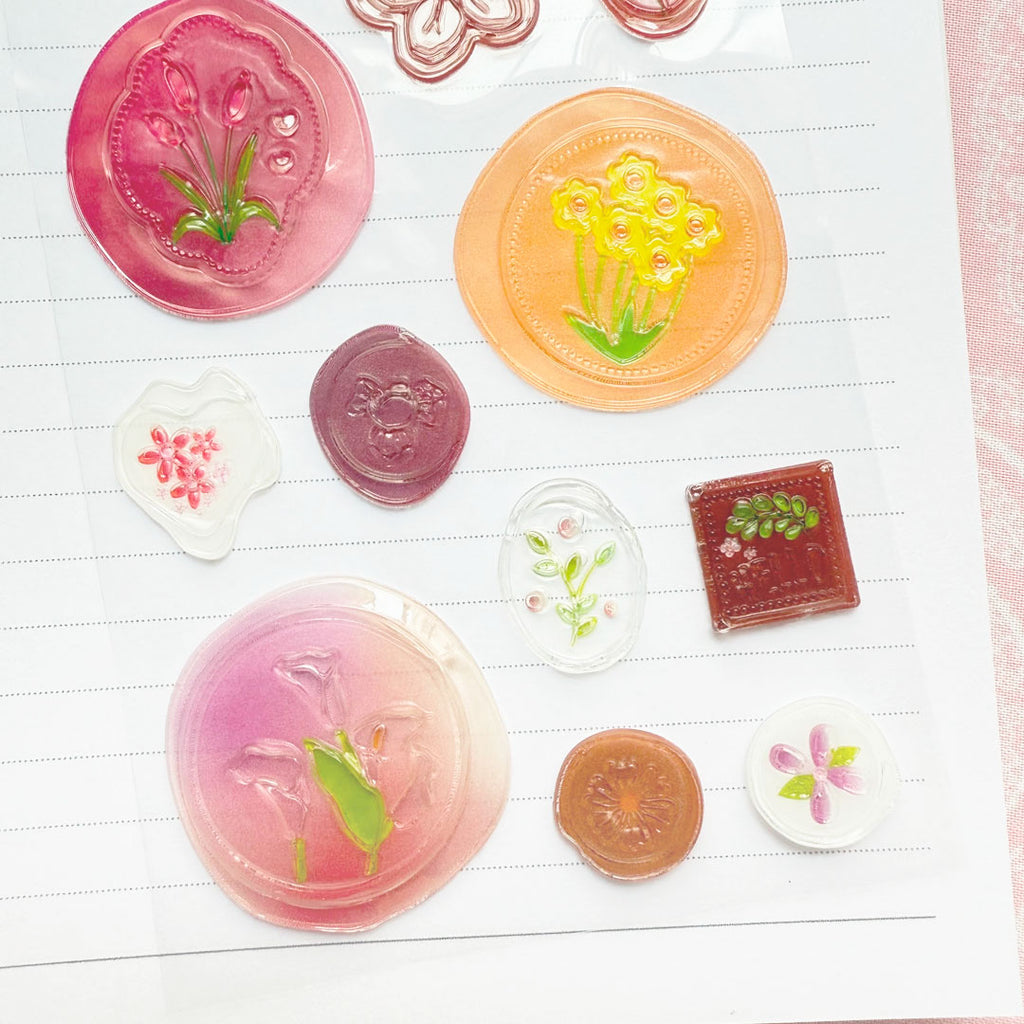 ¡Estas calcomanías con relieve son bellísimas! Simulan ser sellos de lacre con lindos detalles florales con fondo traslúcido. Úsalas para decorar tu libreta o cualquier superficie lisa. También son ideales para las páginas de tu diario, cartas, sobres y tus proyectos de scrapbook.
