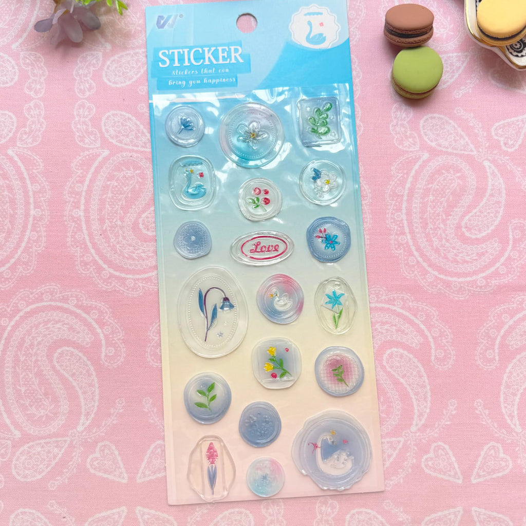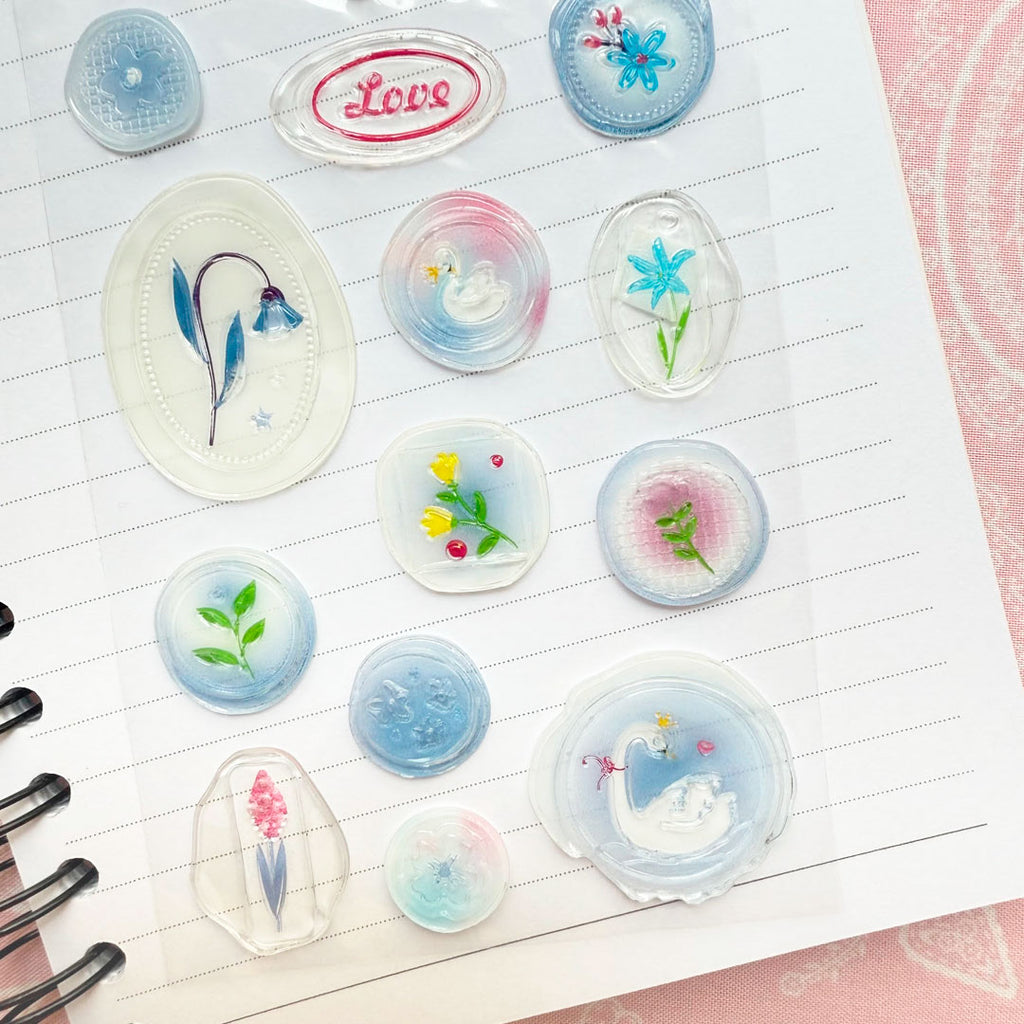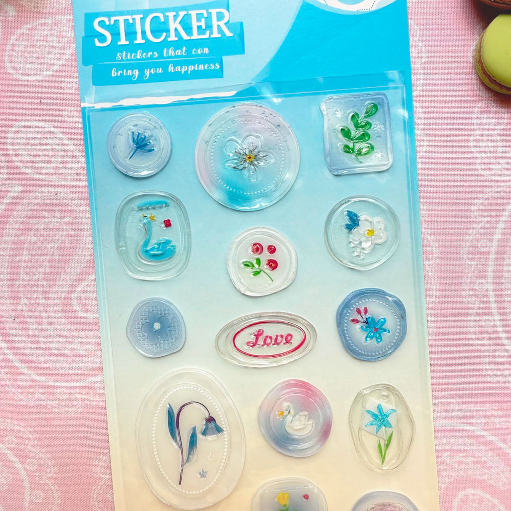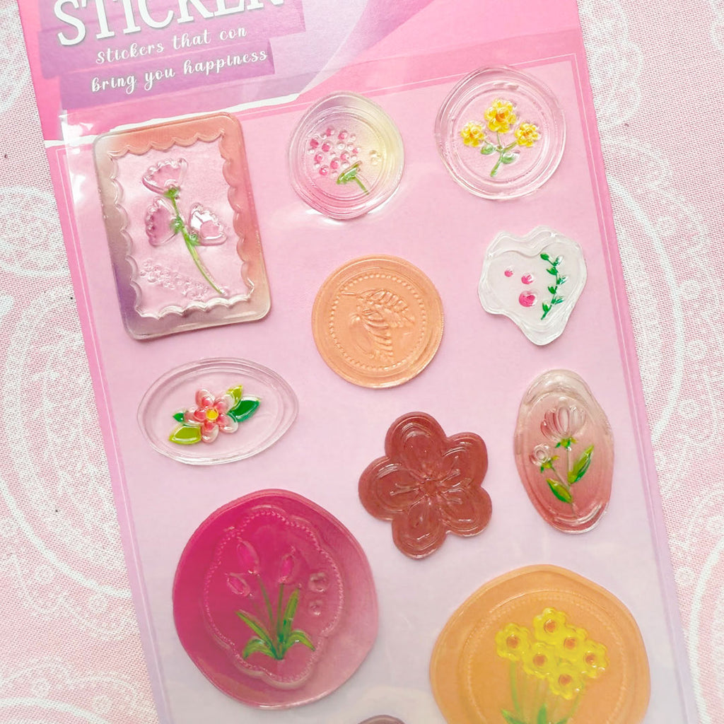 ¡Estas calcomanías con relieve son bellísimas! Simulan ser sellos de lacre con lindos detalles florales con fondo traslúcido. Úsalas para decorar tu libreta o cualquier superficie lisa. También son ideales para las páginas de tu diario, cartas, sobres y tus proyectos de scrapbook.